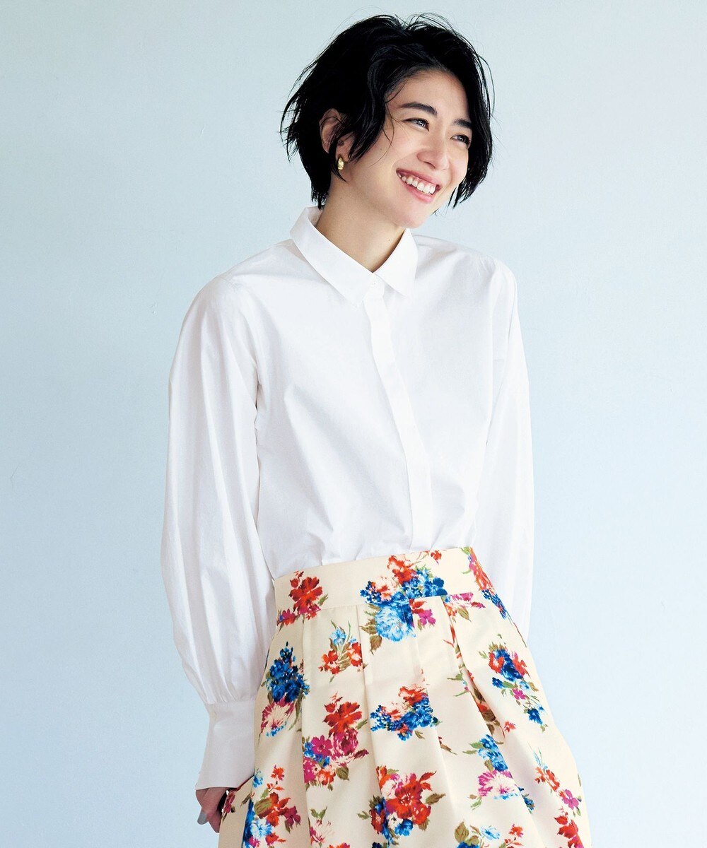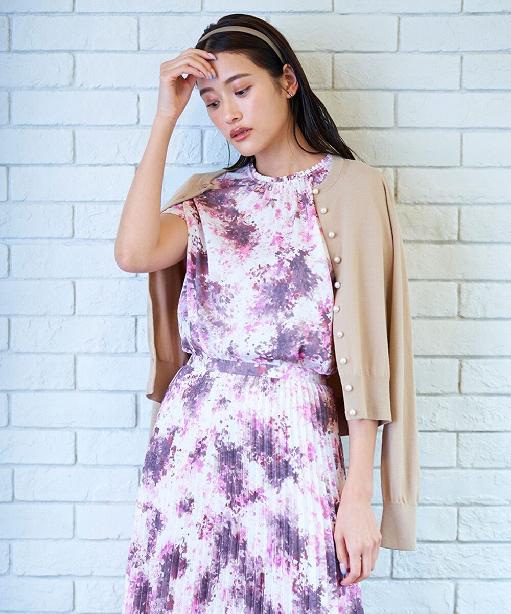 小さな花柄のプリントが大人っぽい印象なので、甘くなりすぎず、女性らしく着こなしていただけます。