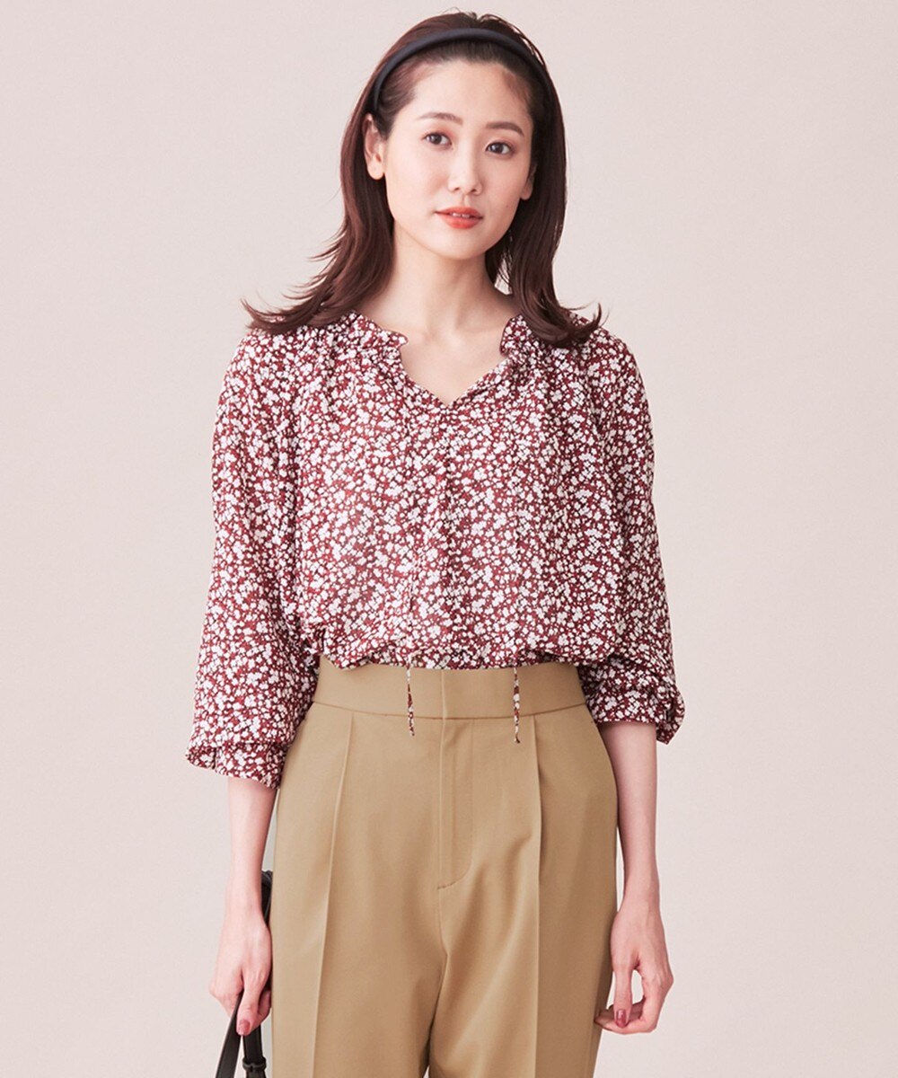 【オンワード】 組曲 S>トップス 【WEB限定】プティフルールプリント ブラウス ワイン S2 レディース 【送料無料】