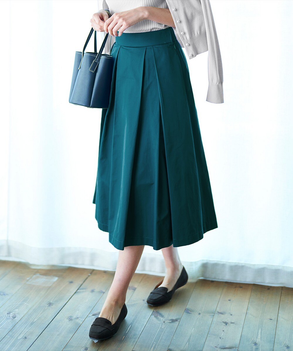 送料無料 2021AW雨の日のお出かけにも♪撥水加工付きのボリュームフレアスカート■デザインボリューム感が愛おしいフレアタックスカート。