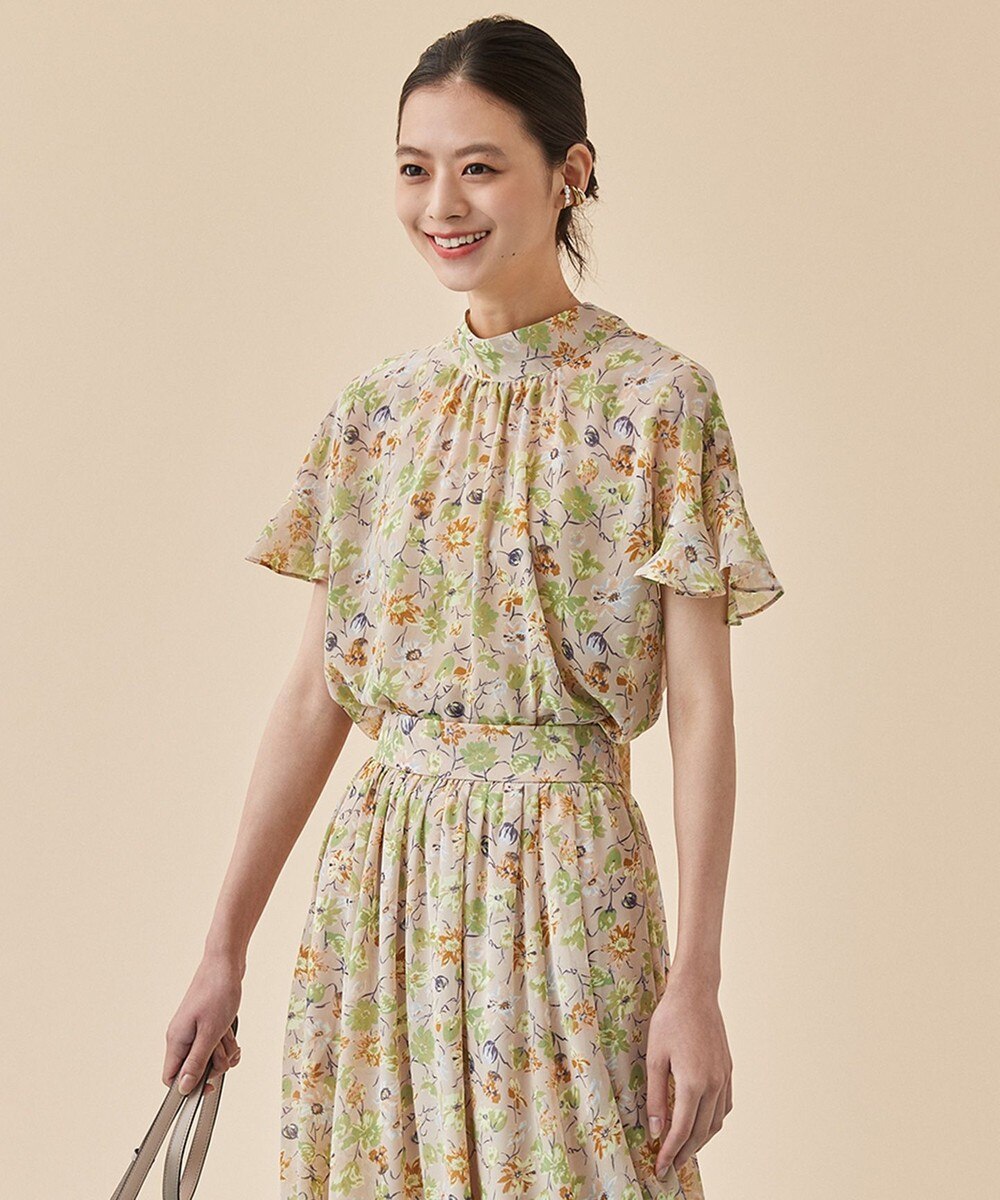 送料無料 2021AW甘くなりすぎないグラデーション、ふんわりシルエットのフラワープリントブラウス■デザイン前後着用を楽しめる2WAYブラウス。