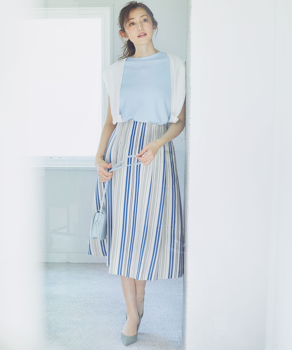 送料無料 50%OFF 2021SSランダムなマルチストライプが印象的なフレアスカート■デザインウエスト周りをすっきりさせたタックスカートは、ふわりと広がるキレイなシルエットがポイントです。