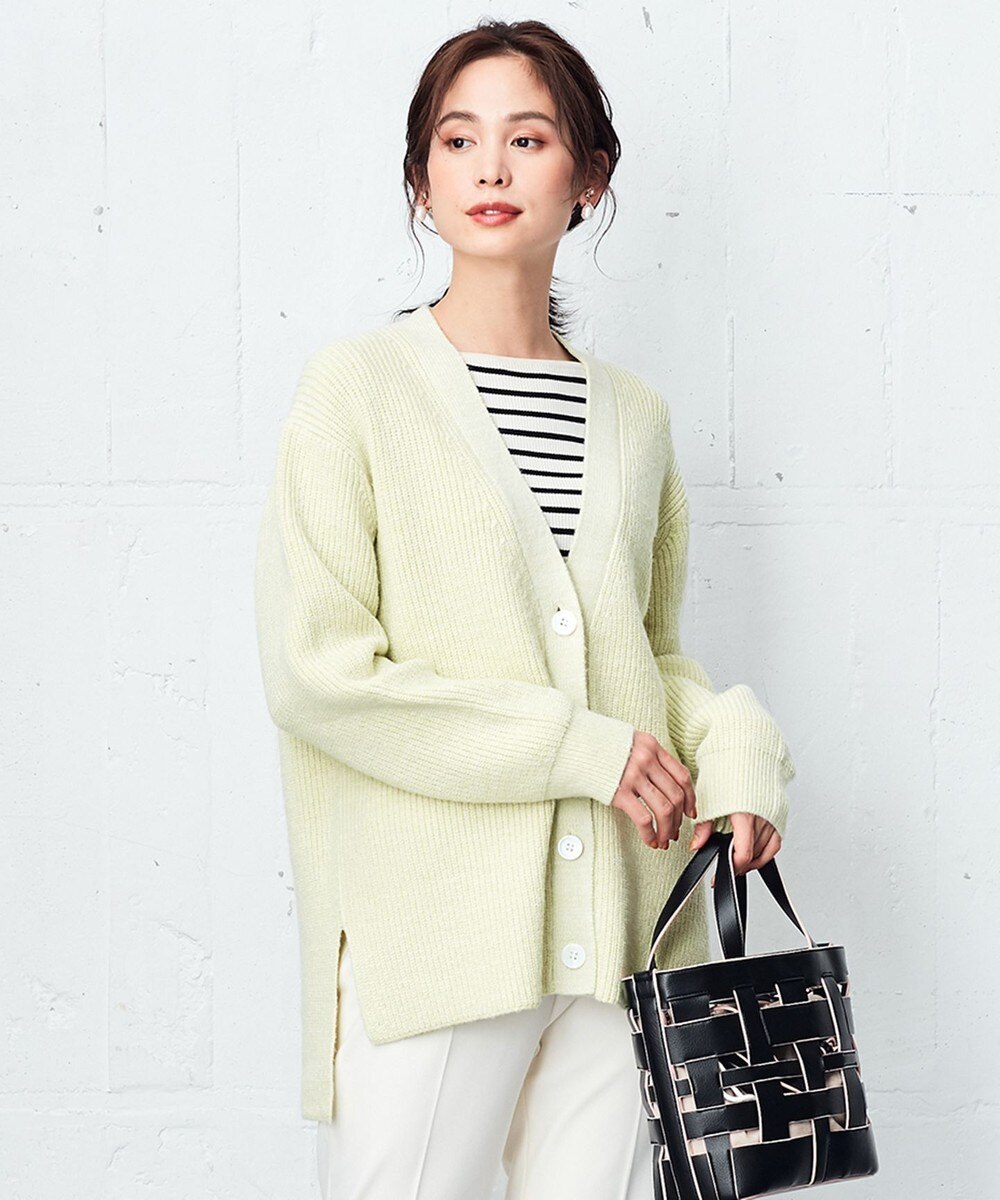送料無料 2021AWシンプルなスタイリングを明るくしてくれる、カラーがキレイなニットカーディガン■デザインゆったりしたシルエットのニットカーディガン。