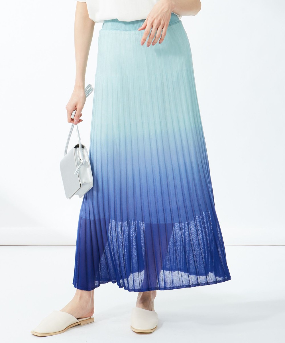 送料無料 50%OFF 2021SS女性らしいシルエット×美しいグラデーションのニットプリーツスカート■デザイン少し透け感のある生地感と透明感のあるカラーで軽やかな装いをお楽しみ頂けます。