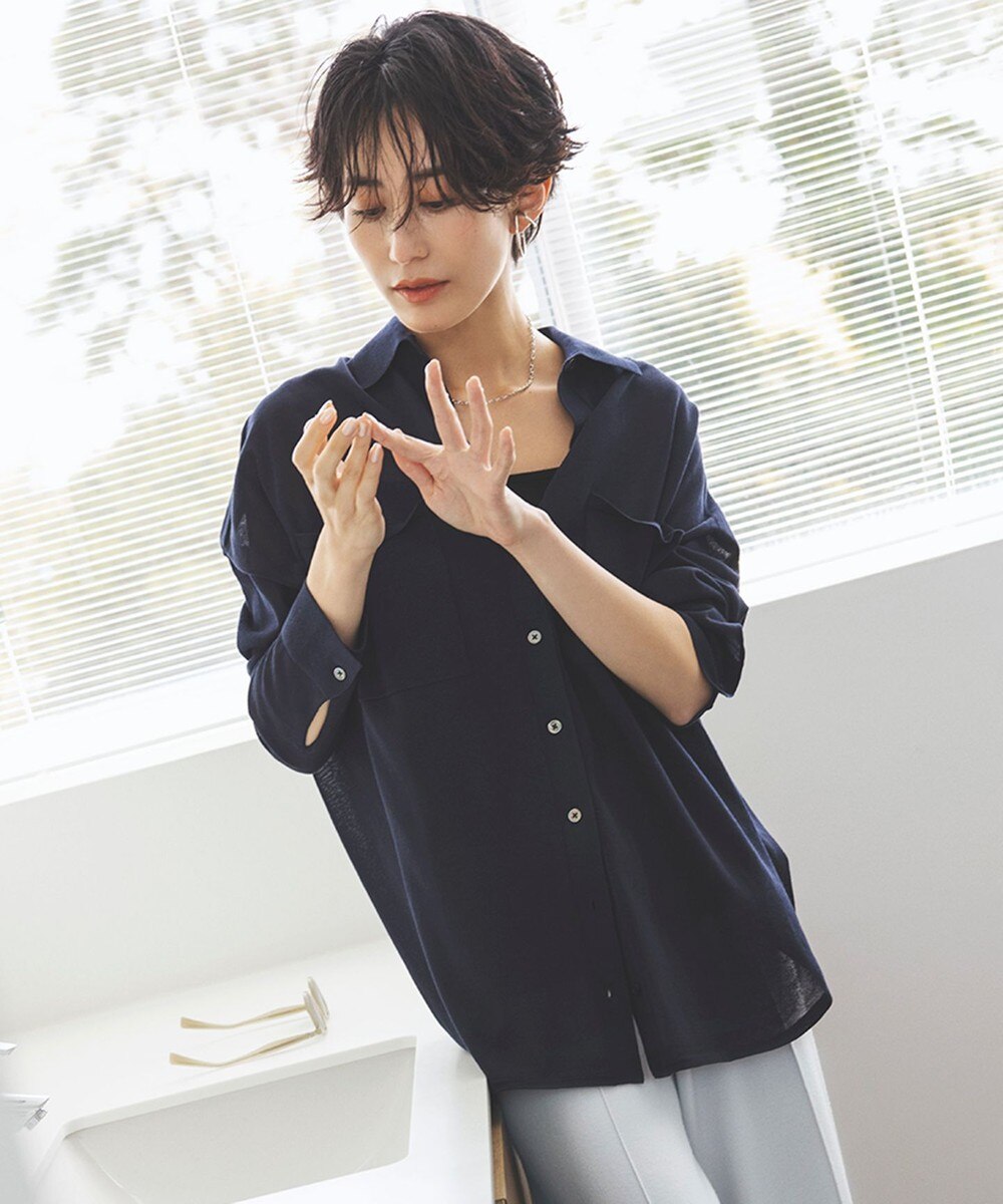 【オンワード】 組曲 S>トップス 【洗える】CO/NY シアーニット シャツ ネイビー S2 レディース 【送料無料】