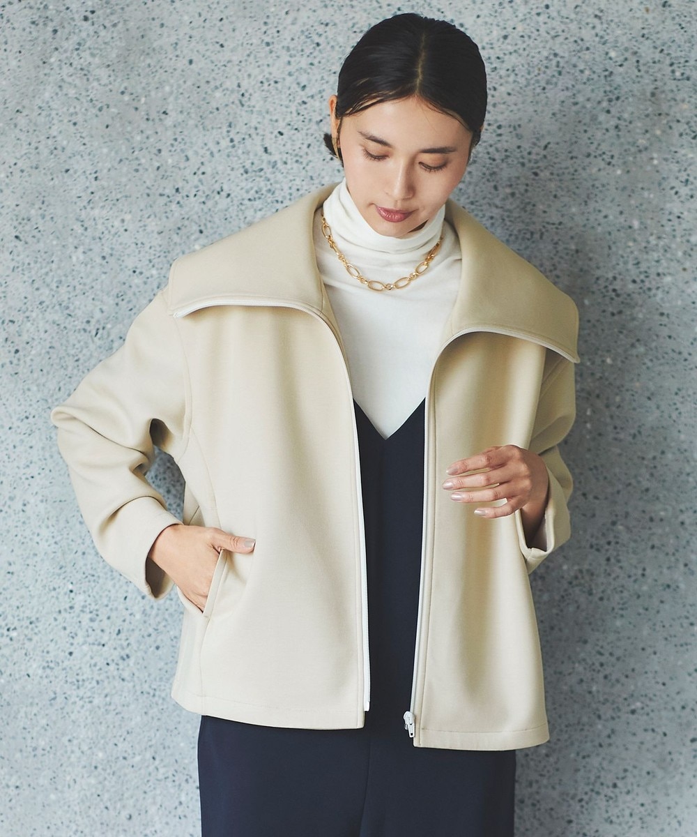 ファスナーを首元まで上げて頂ければ、スタンド襟としてお召し頂けます。