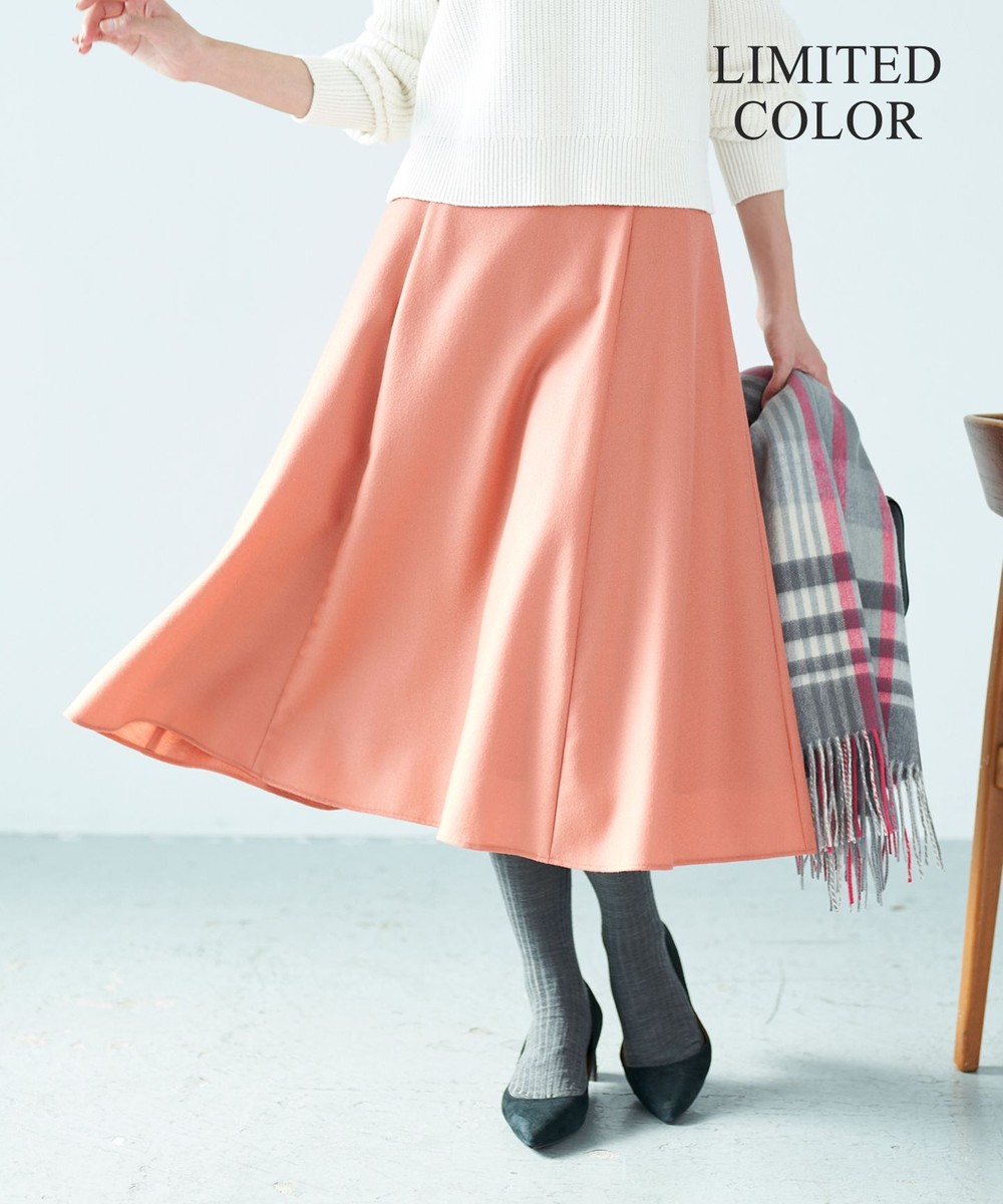 送料無料 2021AW暖かくて着回し抜群、ウール素材の美シルエットフレアスカート■デザイン毎年好評のシルエットにこだわったウールフレアスカートです。