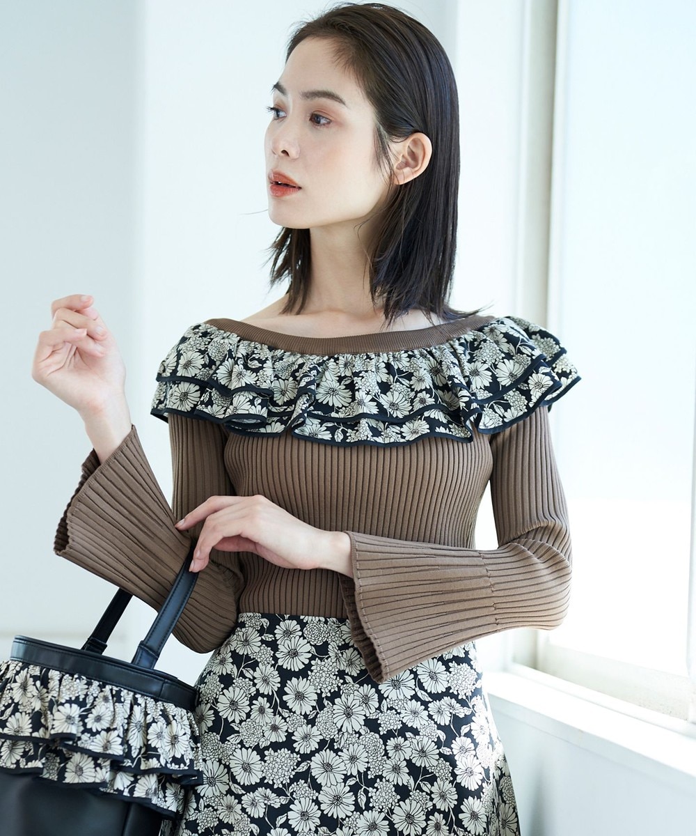 【オンワード】 組曲>トップス 【VERY STORE掲載・組曲×setsuko sagittaire】picnic プリントドッキングリブ ニット(KL38) ブラウン 3 レディース 【送料無料】