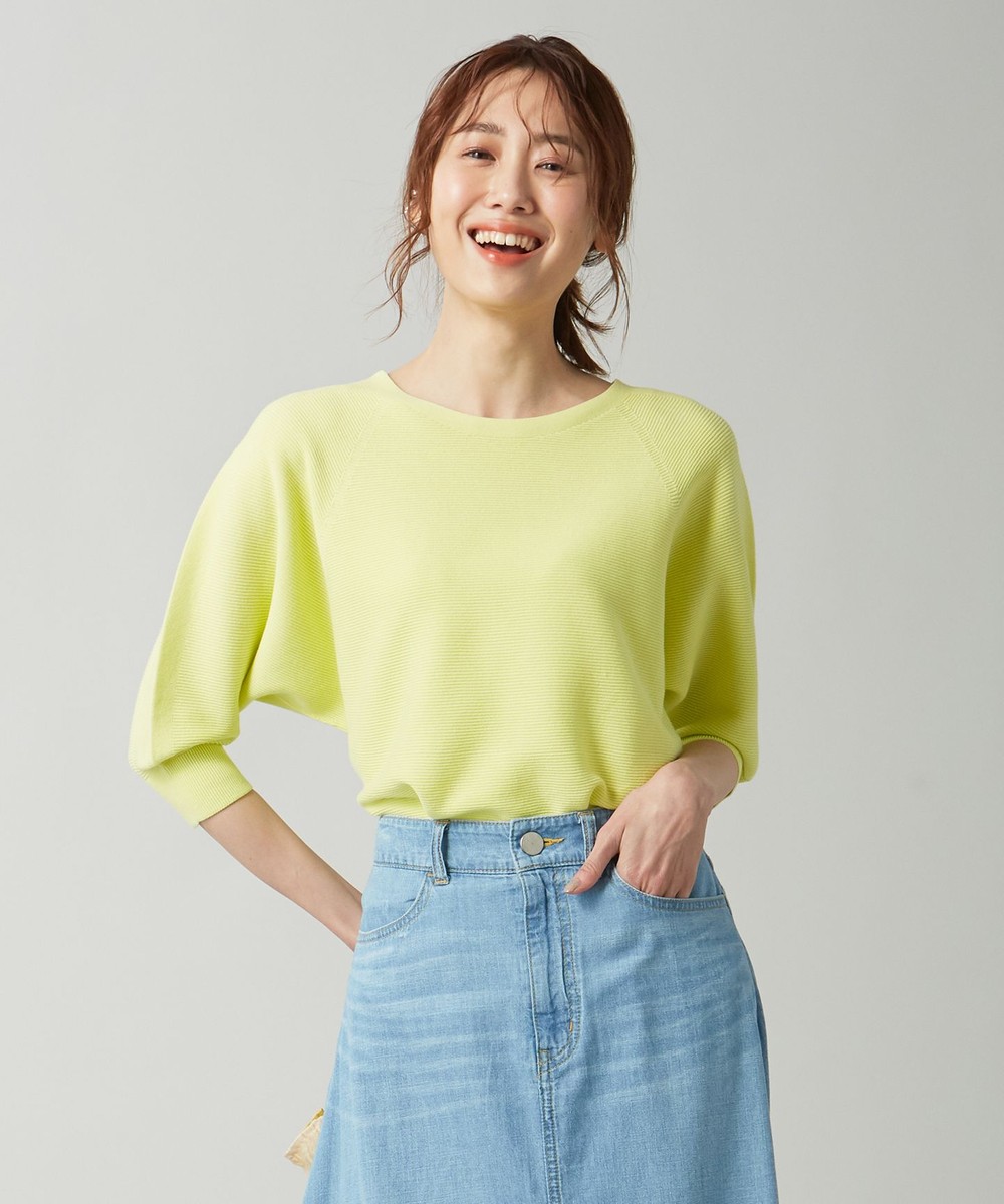 送料無料 50%OFF 2021SSボタニカル製法で染め上げた自然由来のカラー&環境に配慮したホールガーメント編みニット■デザイン程よいボリューム袖が女性らしいニットプルオーバー。
