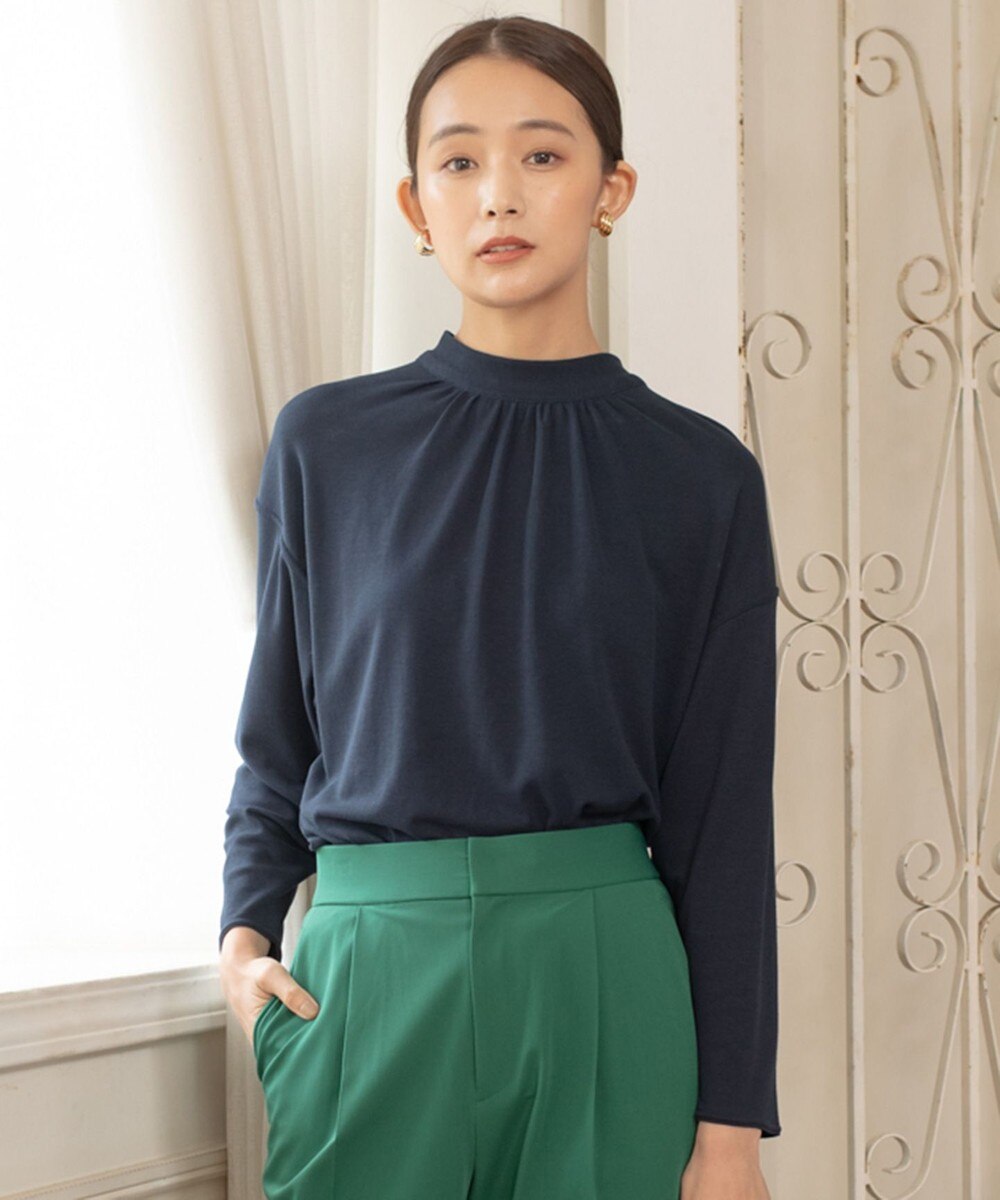送料無料 2021AW様々な着こなしが楽しめる、前後着用可能なブラウスライクカットソー■デザイン首回りがデザインポイントの、前後着用可能なトップス。
