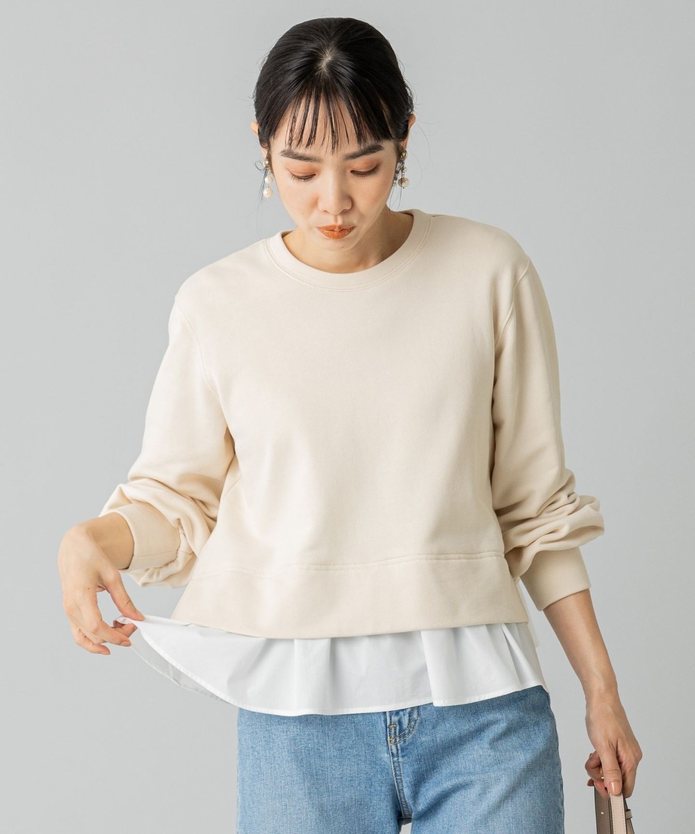 【オンワード】 組曲 L>トップス 【洗える】コンビネーションスウェット プルオーバー アイボリー 6 レディース 【送料無料】