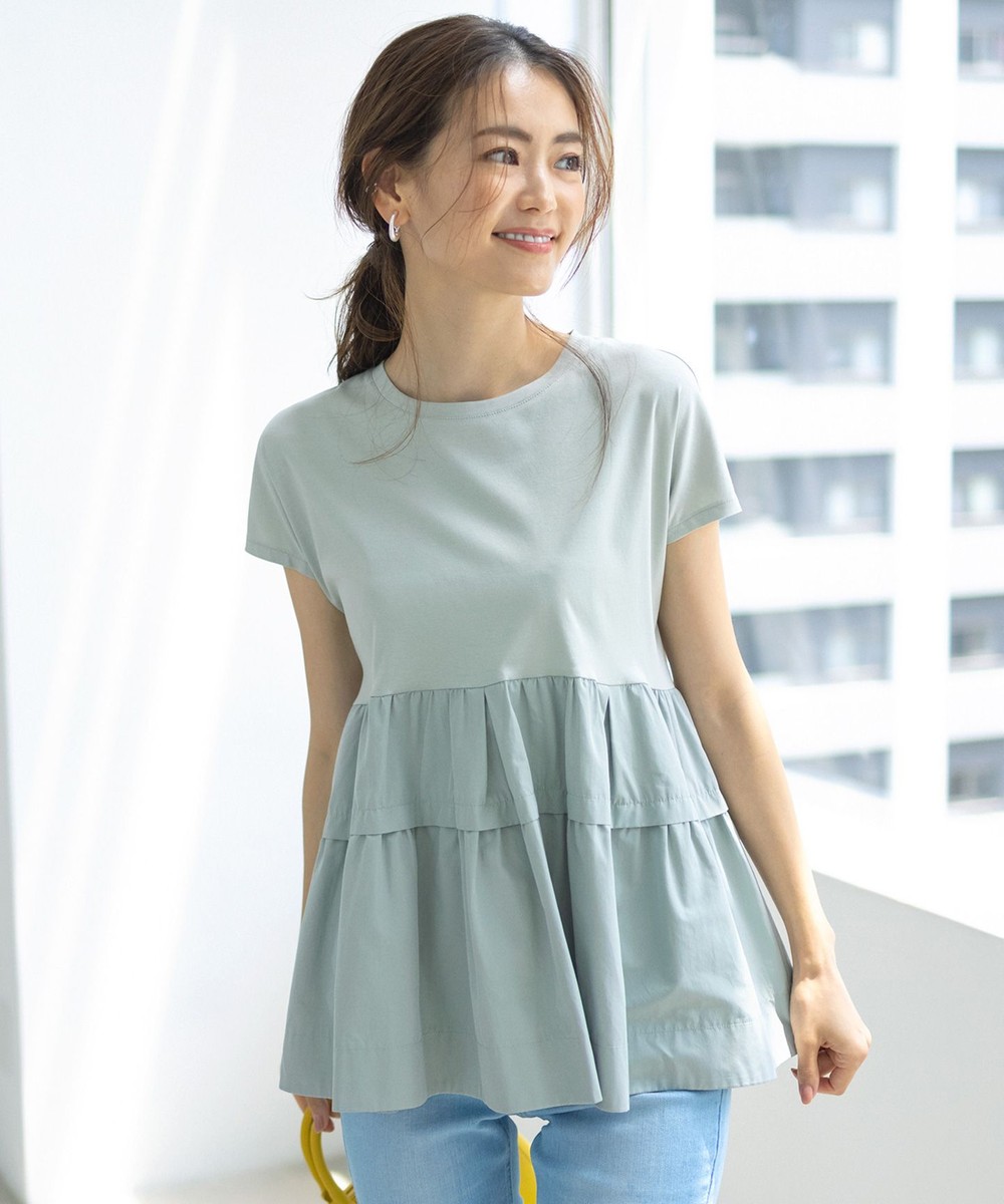 送料無料 30%OFF 2021SS体型カバーにも◎!一枚で着映えする華やかなティアードカットソー■デザイン裾に向かってふわっとしたAラインシルエットのティアード切り替えカットソー。
