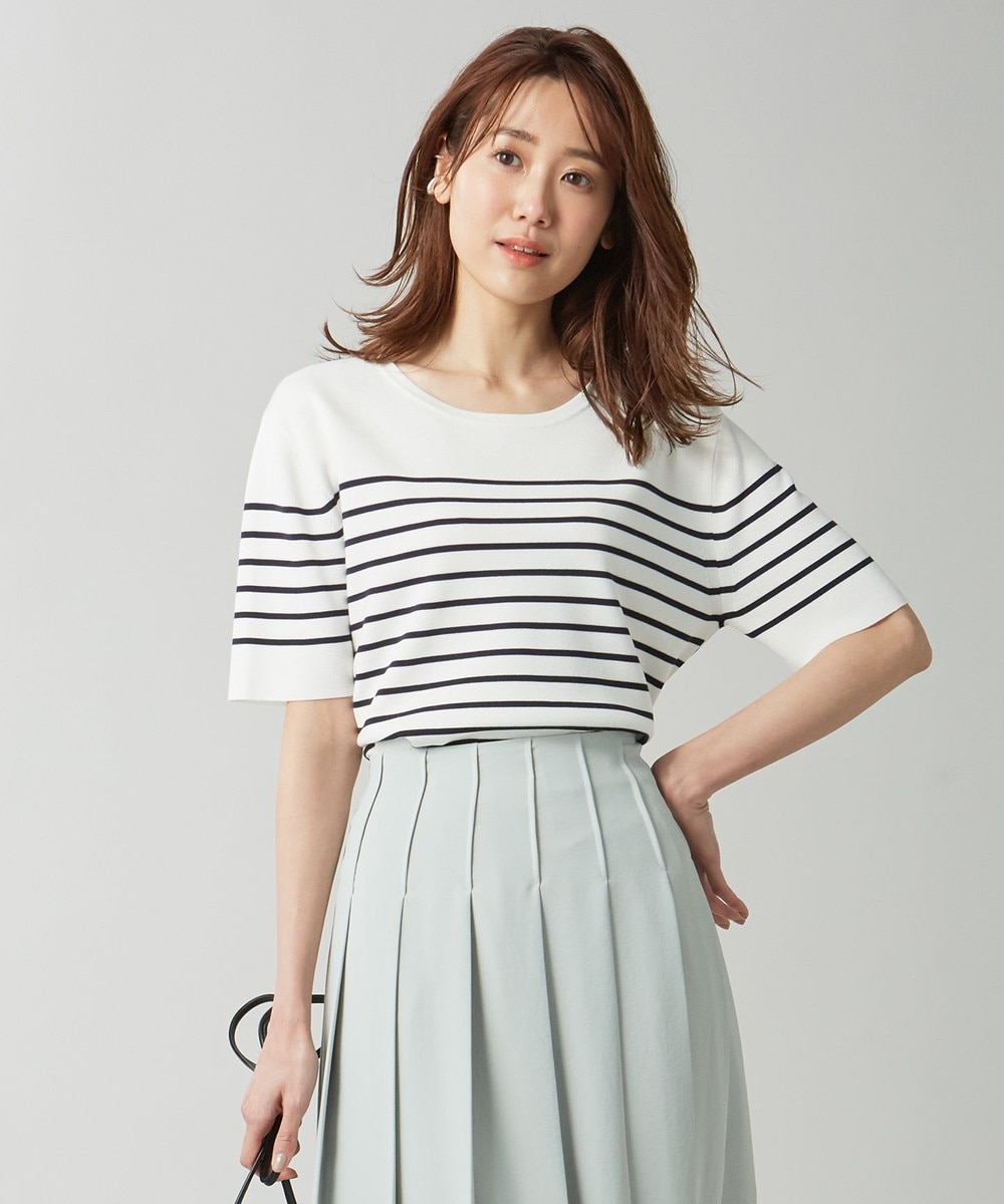 ■素材適度な肉感とクリアな素材感、さらっとした風合いが特徴の素材を使用したフレッシュ配色のボーダーが新鮮なリブニットT。