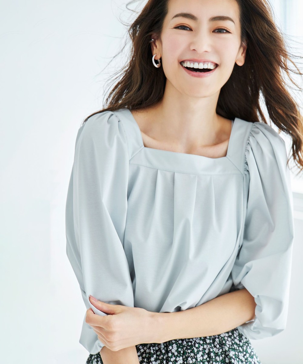 送料無料 30%OFF 2021SS首元がすっきりキレイに見える、大人可愛いスクエアネックのカットソー■デザイン袖にボリュームのあるスクエアネックがポイントのカットソースクエアネックが衿まわりをすっきり見せてくれるので、フェミニンになりすぎず大人の女性でも着やすいデザインです。