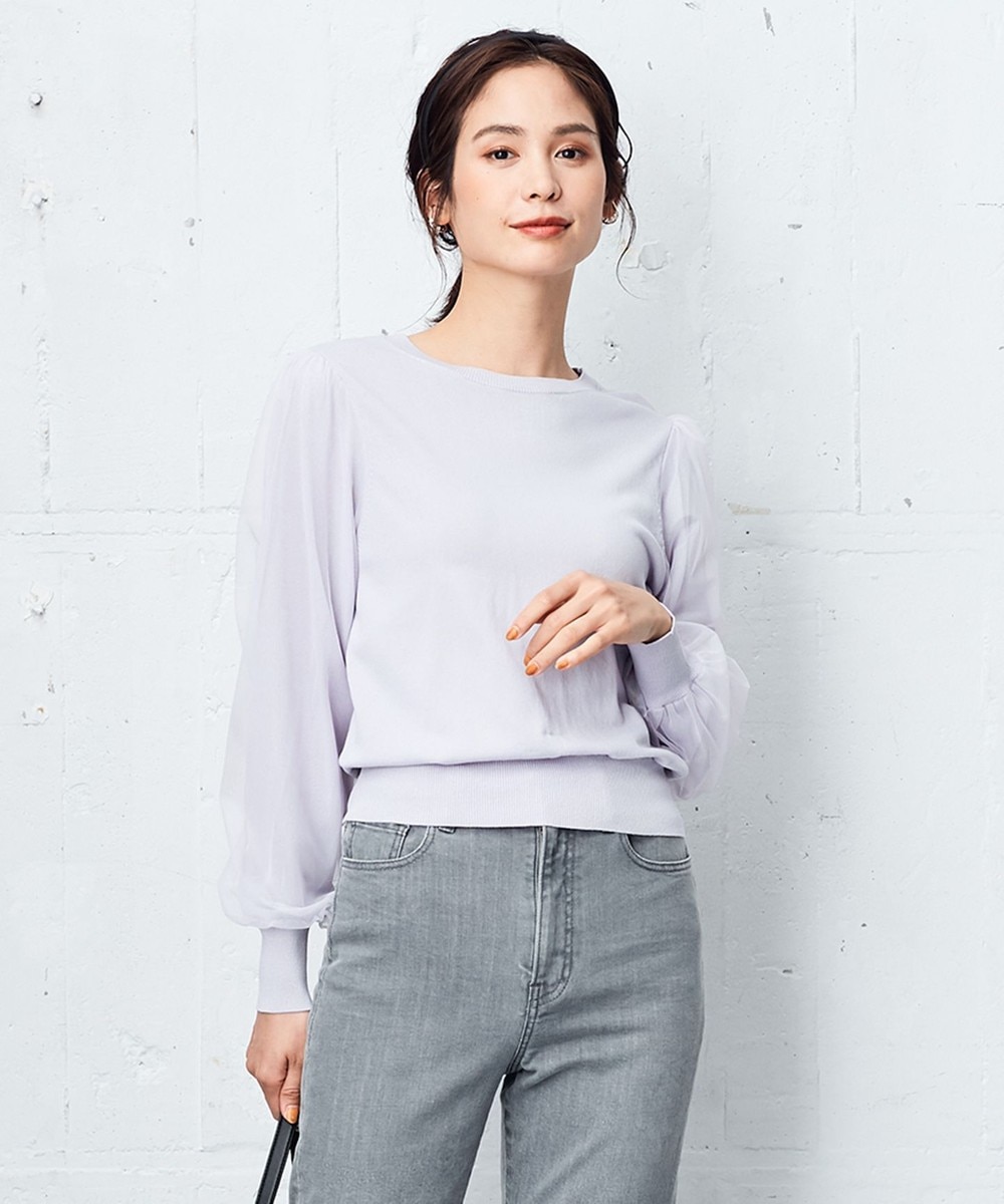 送料無料 2021AWエアリーなチュール袖がポイントのニットプルオーバー■デザインチュールを重ねた袖がエアリーに印象付けてくれるニットプルオーバー。