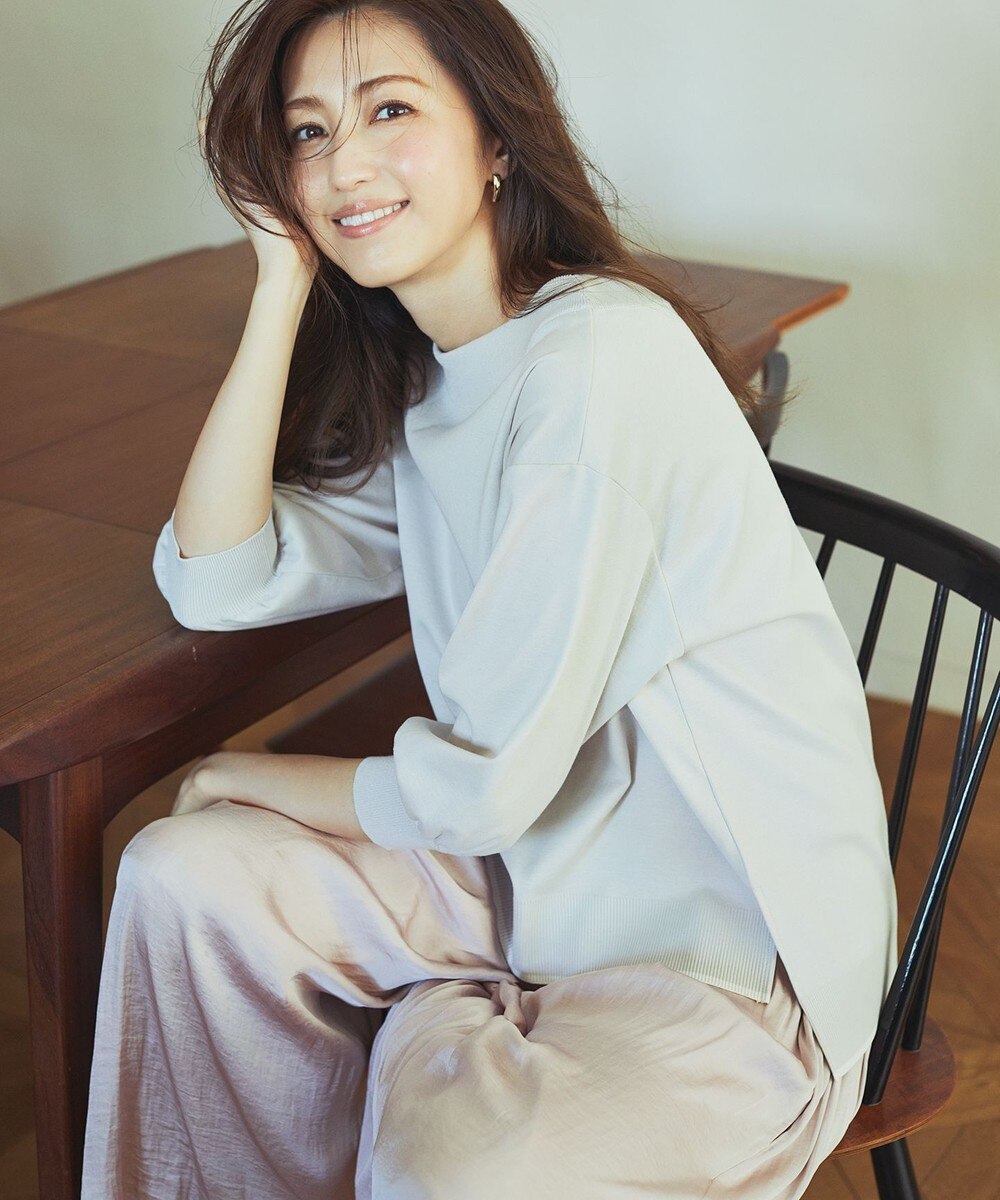 リラックス感がありながら、ボートネックデザインでデコルテや顔まわりをすっきりと見せてくれます。