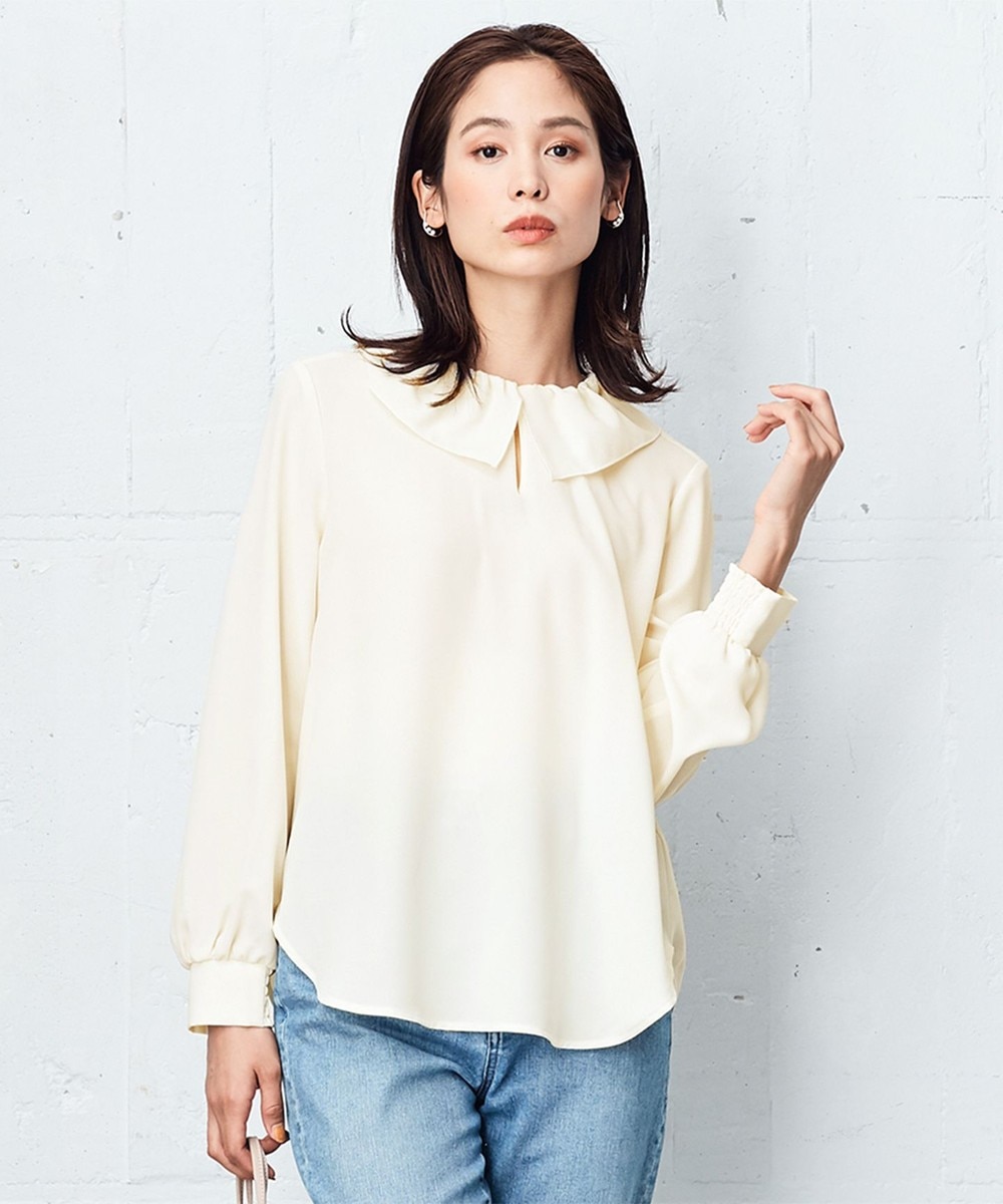 【オンワード】 組曲>トップス 【洗える】フリルカラー ブラウス アイボリー 3 レディース 【送料無料】