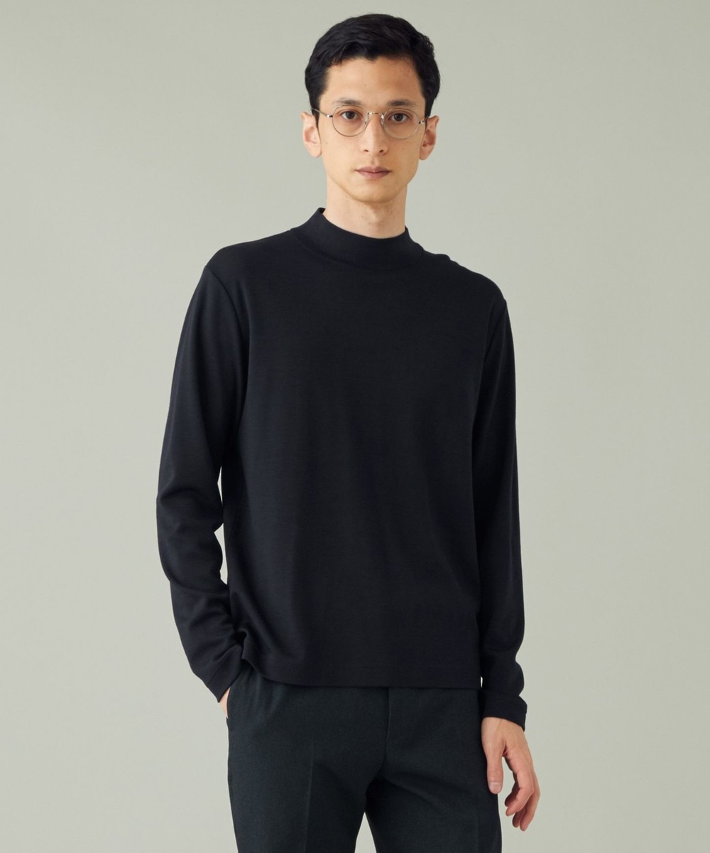 【シルエット】ジャケットのインナーとしても、一枚でも着れるレギュラーシルエット【仕様特徴】モックネック:ジャケットを着ても、衿が高くなっているので首元の肌がジャケットに直接触れません。