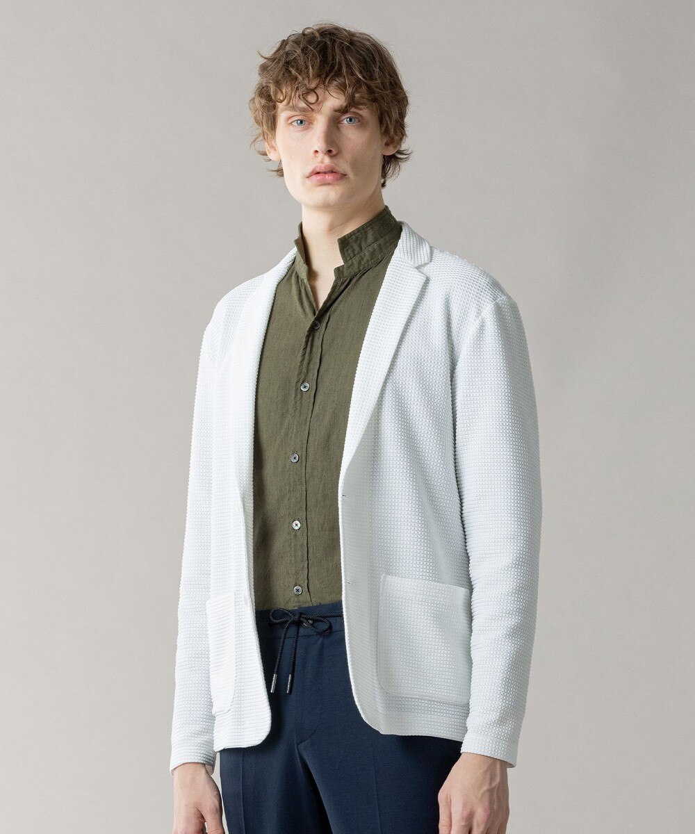 テーラードジャケットのディティールを持ち合わせ、カットソーの上に一枚羽織るだけできれい目な雰囲気を作ることのできる汎用性の高いアイテム。